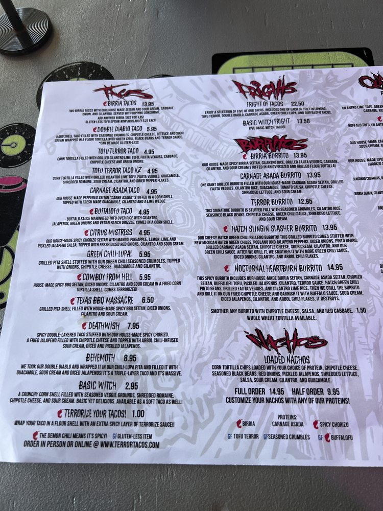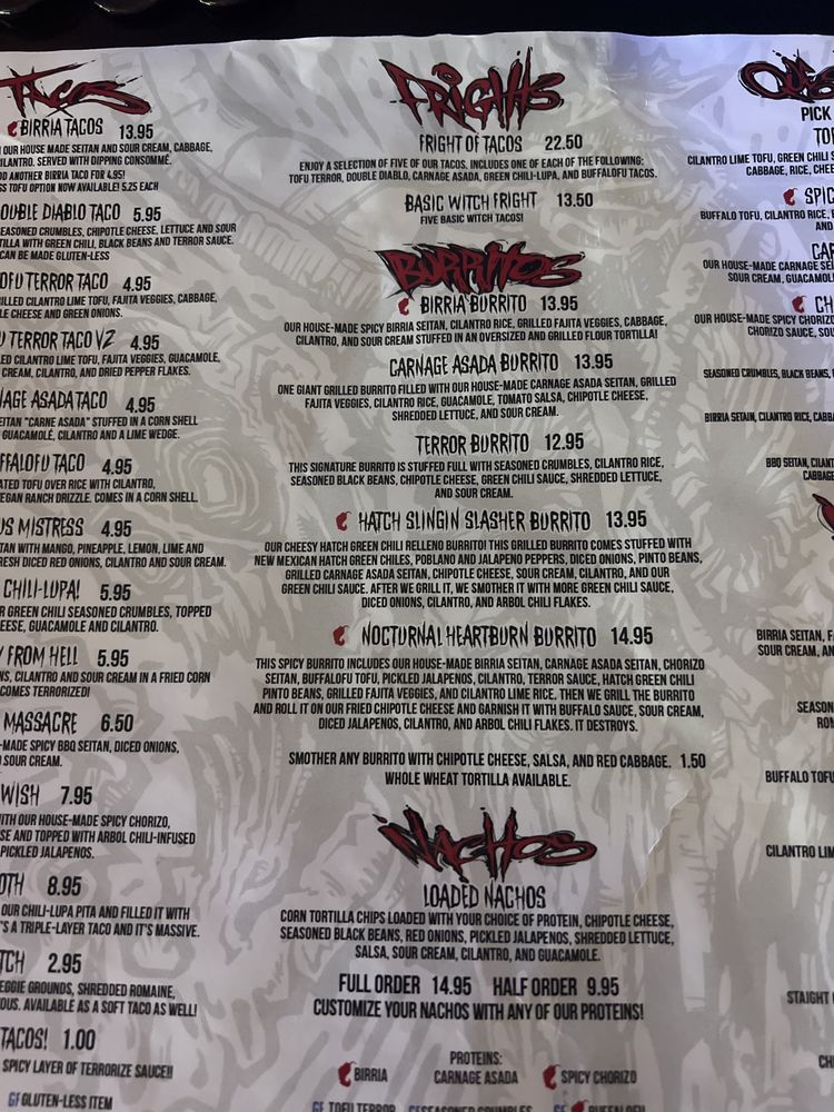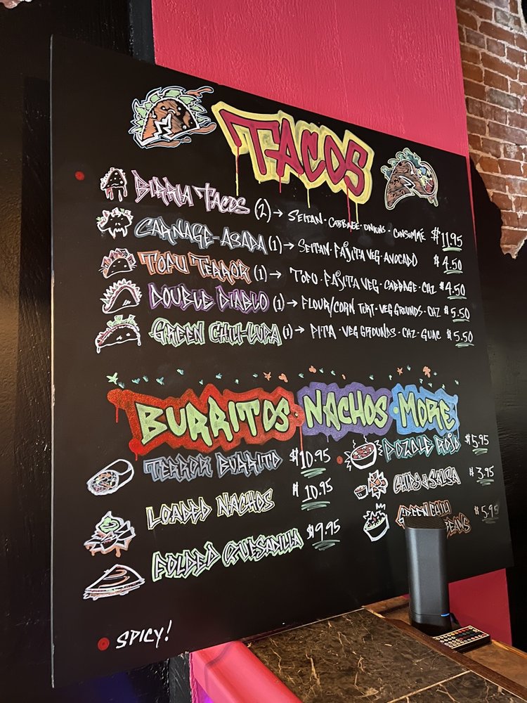 Welcome to Terror Tacos, a whimsically spooky taco haven in St. Louis that stands out with its immersive horror-themed decor and inventive menu. This popular spot caters to a variety of dietary preferences, boasting an impressive selection of vegan and vegetarian tacos, burritos, and nachos, all delivered with a theatrical twist.